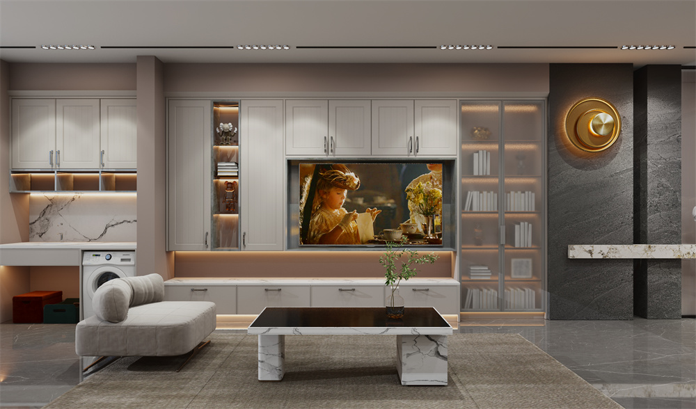 整體式的電視機+陽臺柜組合連接背景墻,空間質(zhì)感更有層次,利落的線條更顯帥氣。客廳承擔(dān)著家庭核心活動區(qū),極具包容性,將線條扁平化處理,突破老式簡歐產(chǎn)品的復(fù)雜和臃腫,簡化造型,更符合當(dāng)下年輕人對簡歐產(chǎn)品的訴求。