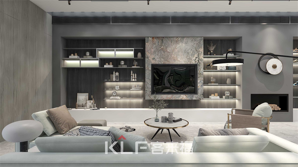明亮的燈光點(diǎn)亮了空間的沉寂,背景采用柵欄式設(shè)計(jì),為空間增添靈動(dòng)感。分層次多功能的展示柜,按照入住需求進(jìn)行擺放。嵌入式的電視柜設(shè)計(jì),節(jié)省空間。