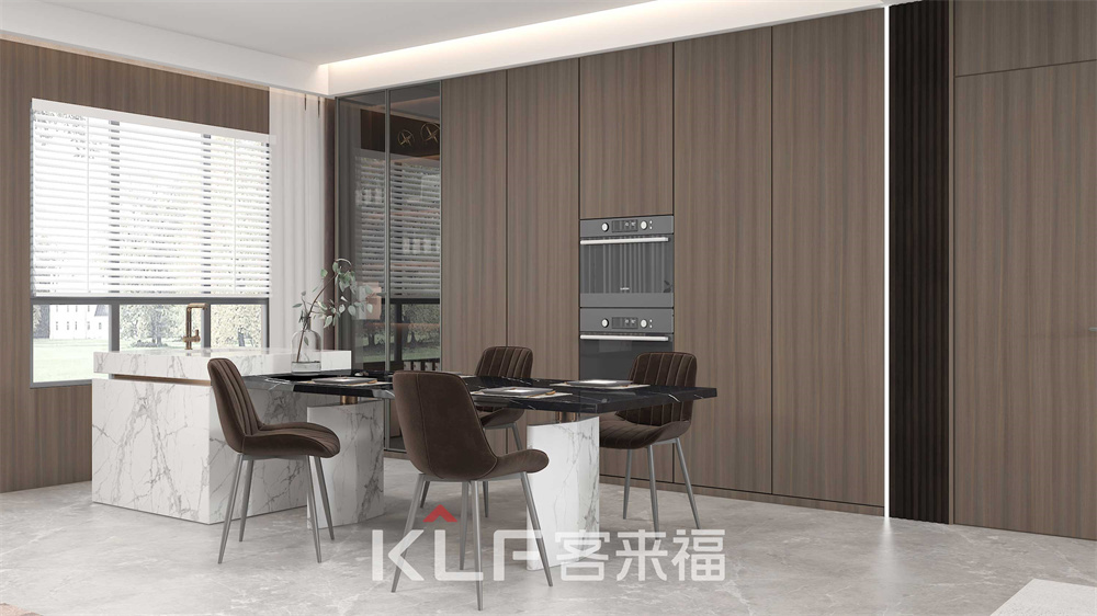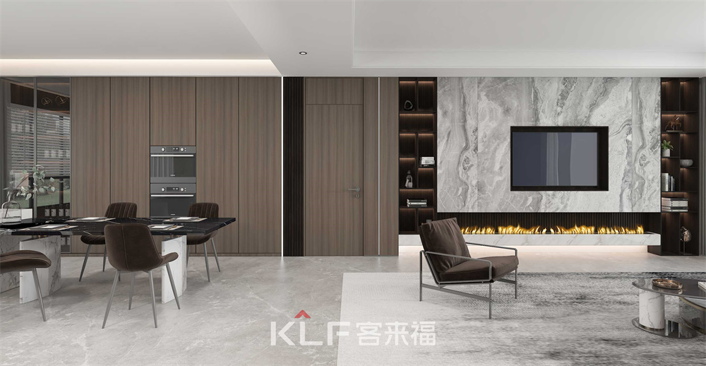 深咖色與木紋的巧妙結(jié)合,令客餐廳更顯沉穩(wěn)大氣。頂天立地柜的嵌入式與半開(kāi)放式設(shè)計(jì),空間立體感油然而生。三兩親朋相聚洽談,保證輕奢格調(diào)的同時(shí)滿足你的多樣化需求。